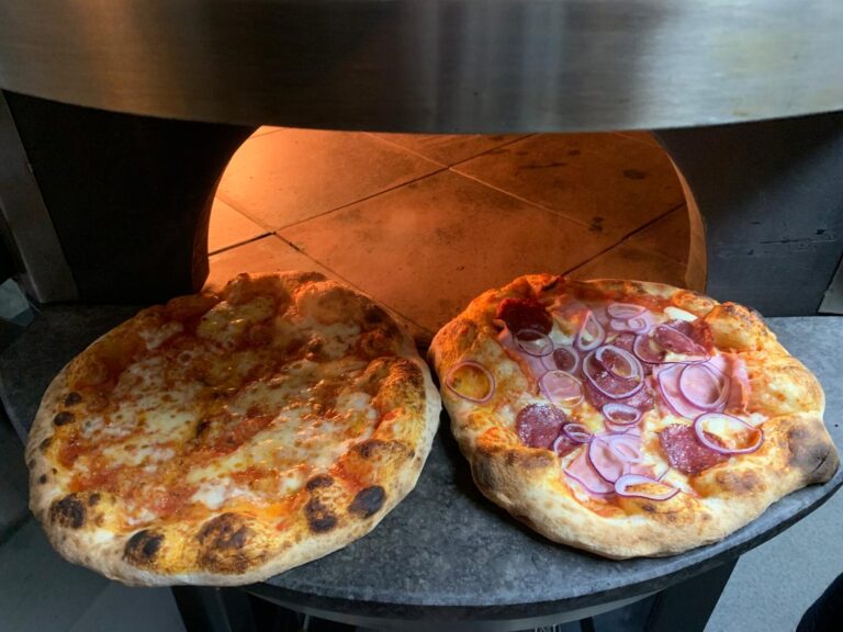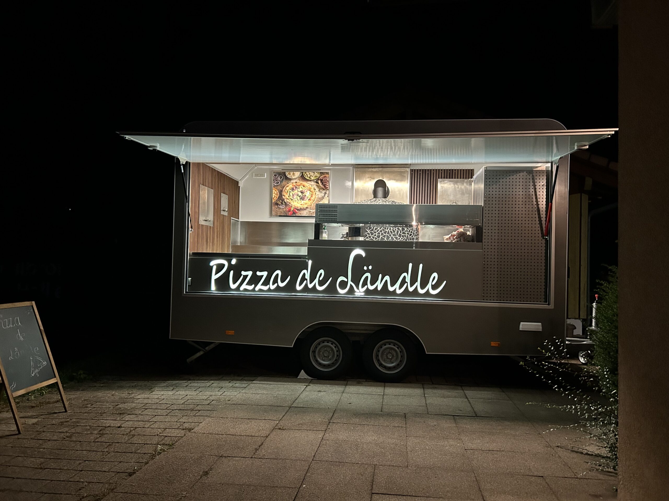 Mit viel Hingabe und der Unterstützung von Freunden haben wir unseren Pizzaanhänger selbst geplant und gebaut. Das Herzstück ist unser Steinofen aus Sizilien, in dem wir Pizzen bei über 400 Grad auf einem Biscotto-Stein frisch zubereiten.